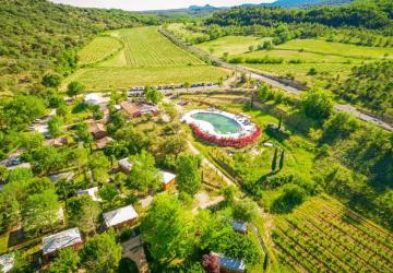 En Cévennes, au cœur des Gorges de l'Hérault, Camping 5 étoiles de charme, locations insolites, Vignoble en Agriculture Biologique et Restaurant La Bergerie. Situé en bord d'une rivière, tout le confort d'un Camping de luxe en pleine nature : piscine naturelle, 2 aires de jeux, sentier vigneron, dégustation de vin, club enfants..... Tout pour réussir vos vacances en famille !