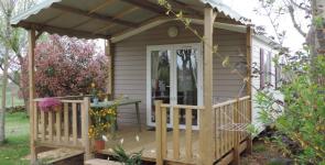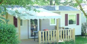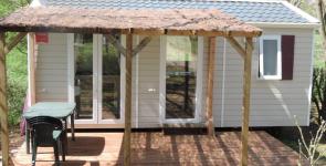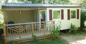Mobil-home TRIGANO VIP. ( 1 chambre ) 20 m2 + 10 m2 de terrasse couverte sur pignon. Possibilité de mettre un lit parapluie dans la chambre parentale. TV