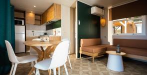 Au milieu d’une végétation typiquement méditerranéenne, non loin des vignobles et des champs d’abricotiers ou de pêchers, vous découvrirez un site calme et verdoyant, au confort très soigné. Les inconditionnels du camping en tente, caravane ou camping-car sauront apprécier ses emplacements bien délimités, engazonnés, tous alimentés en électricité. Selon vos envies, vous pourrez choisir la formule qui vous correspond : du confort "Classique" à l’option tout confort "Privilège"pour un séjour sans contrainte. Et pour ceux qui préfèrent le charme et la praticité d’un hébergement tout équipé, notre large choix d’hébergements saura répondre à toutes les attentes, de la gamme Confort à la gamme Luxe, sans oublier la Tente Lodge. Que ce soit en famille ou entre amis, parents et enfants trouveront leur bonheur à leur rythme entre l'espace aquatique et ses piscines chauffées, ses toboggans, sa pataugeoire, mais également l'aire de jeux, le traditionnel terrain de pétanque ou encore la salle de fitness. Vous pourrez agréablement vous rafraîchir à la Bodega (bar de la piscine), goûter aux spécialités régionales au restaurant. Pour préserver votre tranquillité, au camping Ma Prairie l'espace loisirs et restauration vous accueille de l’autre côté de la rue, face à la réception; un espace pour rire, vous amuser, chanter, danser, manger ou vous désaltérer, sans gêner ceux qui veulent se reposer. Le Camping Ma Prairie sera l’endroit idéal pour savourer pleinement ces petits moments de plaisir qui font la joie des vacances en famille!