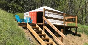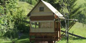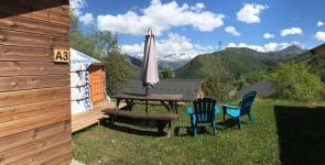 5 chalets 2 à 7 personnes en location entièrement aménagés et équipés, une roulotte, cabane tout bois avec lit 2 places, hutte de trappeur, tipi 4 places, yourtes mongoles,...des places à la nuitée, au week-end, à la semaine...